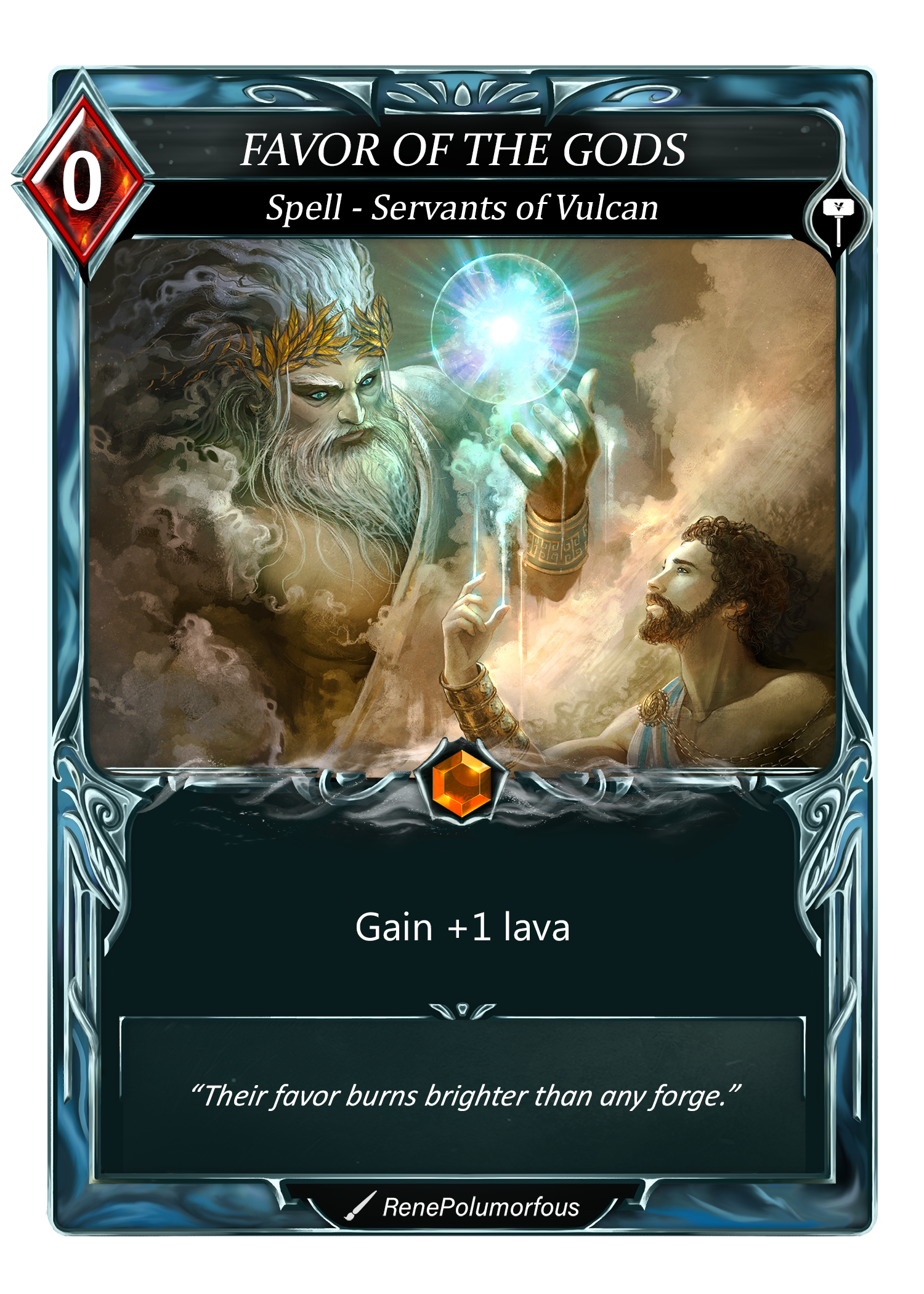 Favor of the Gods — a 0-cost spell that gives +1 Lava.