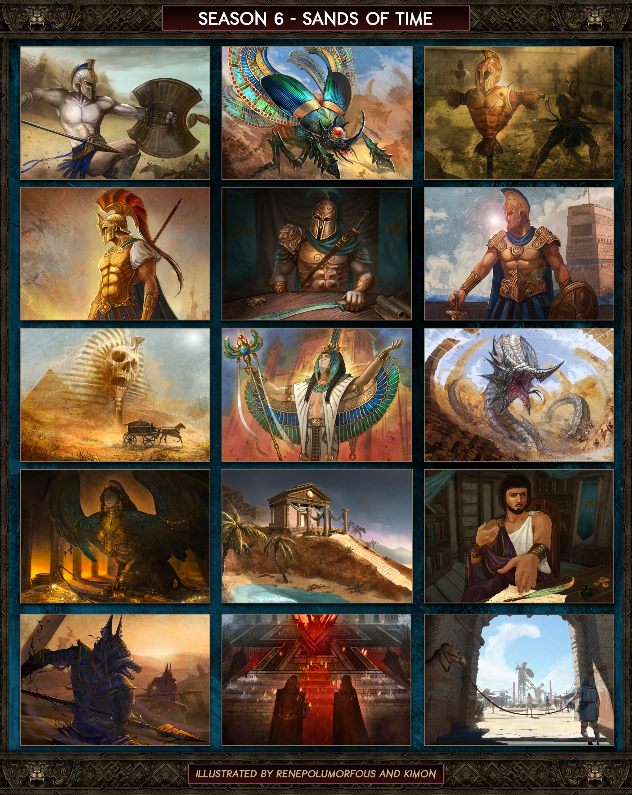 Sands of Time sees the introduction of 15 new season themed cards, with beautiful artwork; all part of the story and shaping your play and decision making. From Achilles, Champion of Iskandria, to the Anubite Warrior and Hem-Netjer, you can experience the full clash of the Iskandrian Hegemony and the Priests of Khemet as they wrestle for control of the Sands of Time..