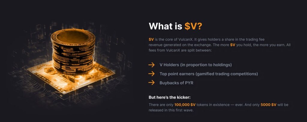 - 20% of all fees go to buying $V, which is given to top traders weekly