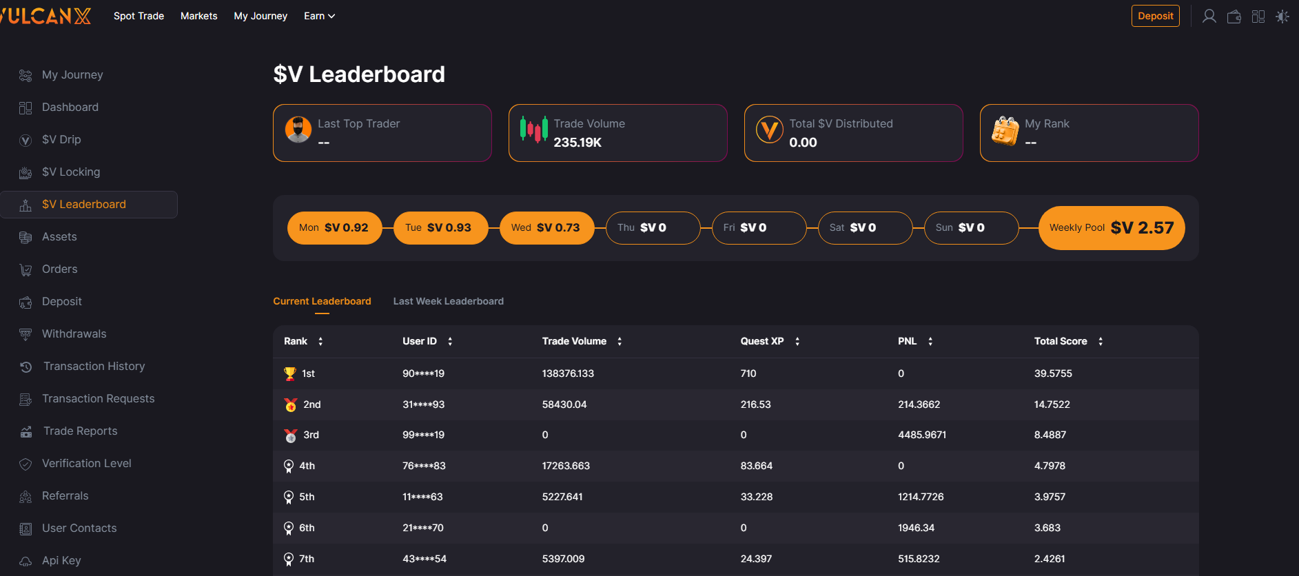 VulcanX Trading Competition Leaderboard Goes Live Monday (Jan 19)